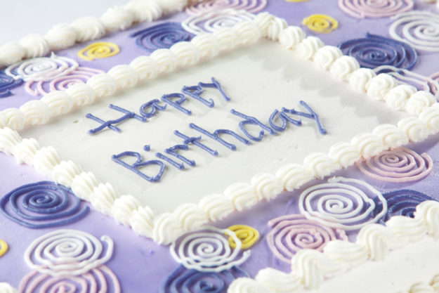 Two layer cake that serves 16. Available in white, chocolate or marble. Basic decorating included, advanced extra