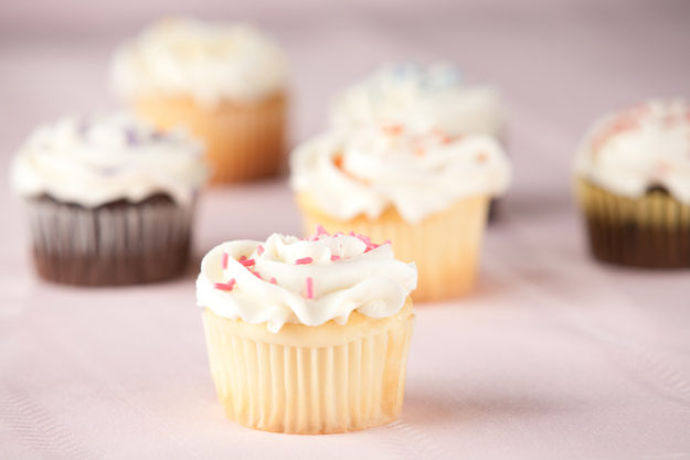White or Chocolate cupcakes topped with our buttercream frosting. These are available every day.