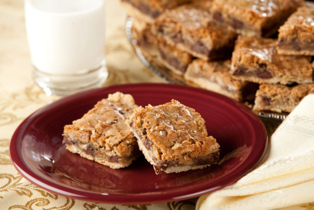 Sweet and tangy, our lemon bars are to die for, made with real lemon juice and a bottom crust with coconut in it.