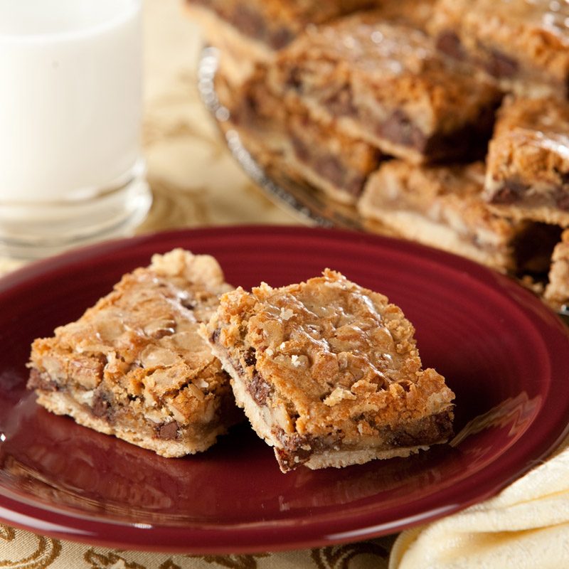 Sweet and tangy, our lemon bars are to die for, made with real lemon juice and a bottom crust with coconut in it.